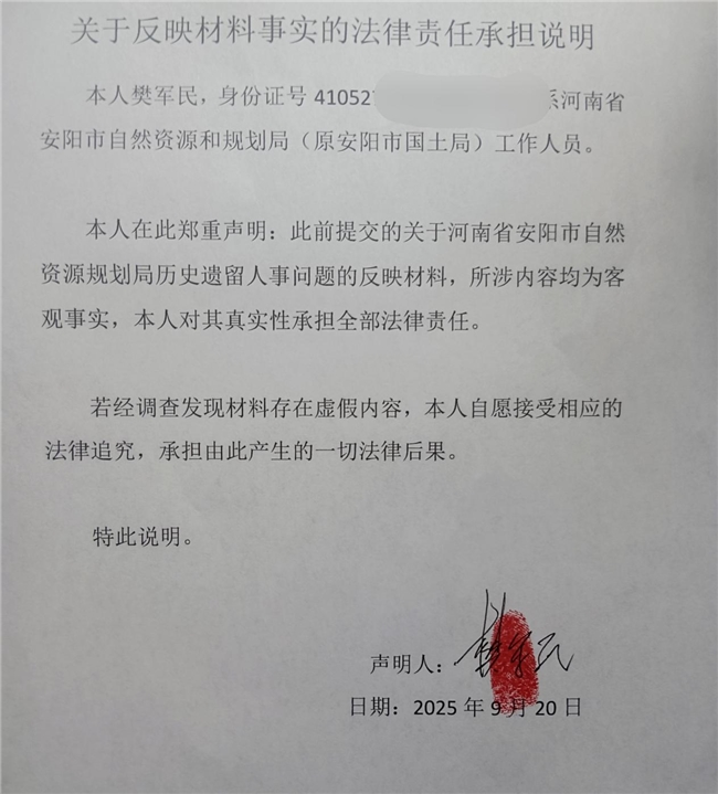就此事联系安阳市自然资源规划局魏局长,魏局长表示知道此事,这个是个历史遗留问题,会尽力解决。我们不知这是搪塞还是会解决?樊军民的维权长征还在继续,而这场关于“编制”与“尊严”的博弈,终将检验地方政府的责任与担当。